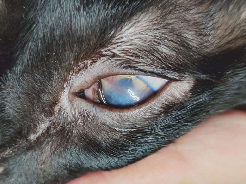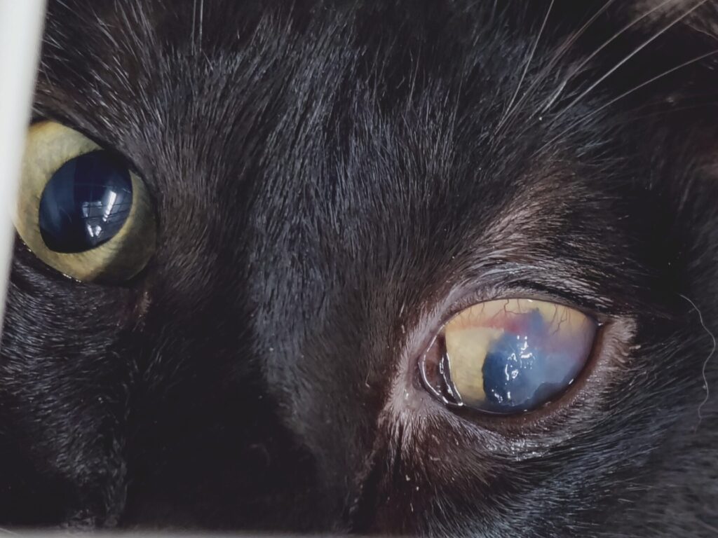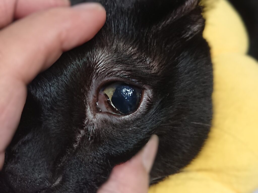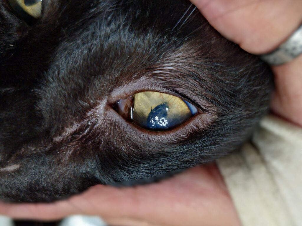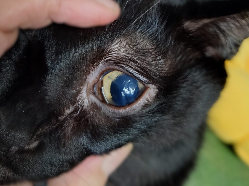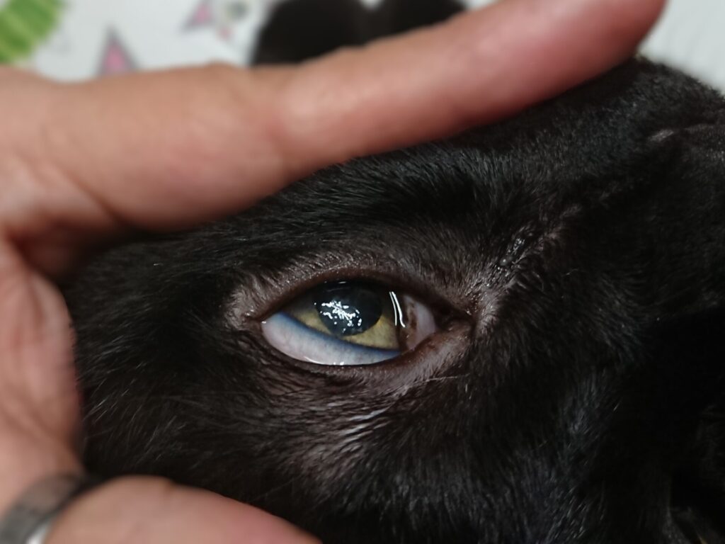 角膜の傷・白っぽいかさぶたが肉眼でもではっきり見える
