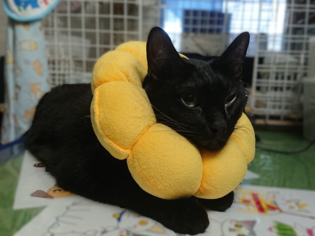 グルーミングで目をこする様子が見られないので日中はエリザベスカラーなし