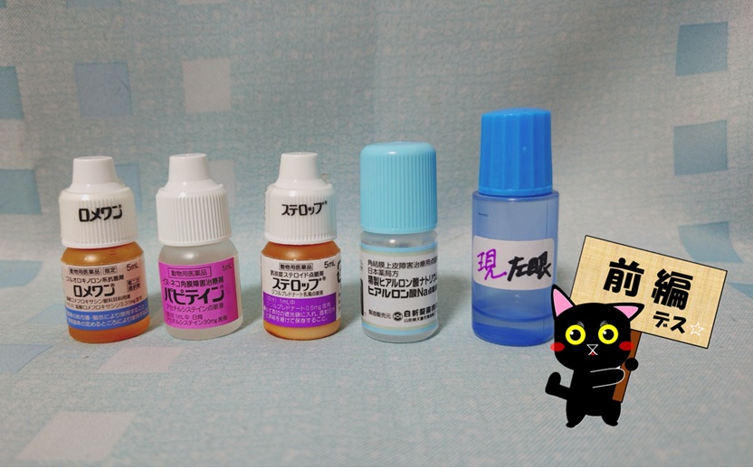 ・点眼薬:特別処方点眼薬(かかりつけ動物病院のオリジナル配合とのこと・アトロピン含む)
