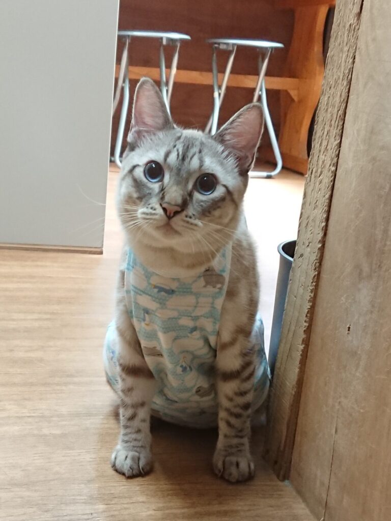 幼い頃に洋服を着せた経験があるのでみぃこほど嫌がらない可能性はあるが、それでもいきなりがっつり洋服のロンパースタイプにするのはやめておこう。