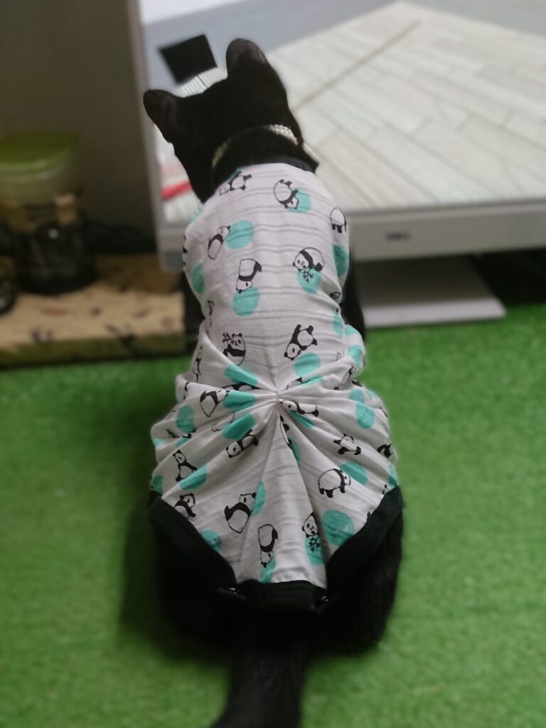 エリザベスカラーを嫌がるので術後服を着せることになり、すごく簡単にできる術後服を作った。