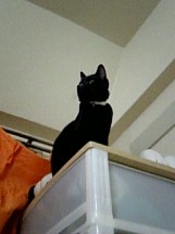 天井を見上げたかと思うと、ピョーンとキャビネットの上に飛び乗った。