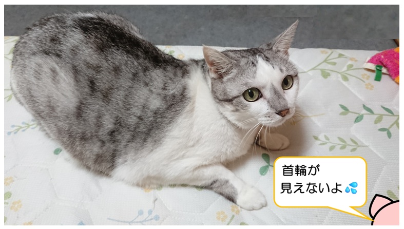 2頭とも現在の首輪がきつくなってはいなかったが、しろみは太ったことで元々あったはずの首周りのゆとりが少なくなっていた。
